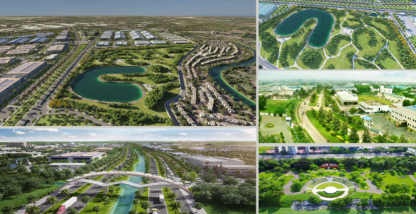Trong dự án này, AIG phụ trách thiết kế quy hoạch cảnh quan và một phần cấu trúc không gian hạ tầng, đảm bảo các khu chức năng được bố trí hợp lý, tạo sự cân bằng giữa hiệu suất công nghiệp và môi trường sinh thái. Phương án thiết kế ưu tiên tối đa hóa hiệu quả sử dụng đất, đồng thời tích hợp giải pháp cảnh quan xanh nhằm giảm tải nhiệt độ bề mặt và cải thiện vi khí hậu cho toàn khu.